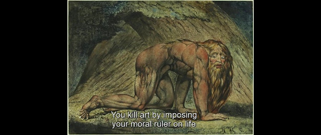 El póster de la película con un sujeto inquietante atisbando entre plásticos algo que se le escapa al espectador prometía un remake al estilo Dexter: el asesinato como una de las bellas artes. Si en aquella (exitosa al comienzo y plúmbea en la octava temporada) serie se nos informaba reiteradamente sobre el "código Harry" de un psicópata aquí se da vueltas sobre el "código Mr. Sophistication" de otro que no le va a la zaga, aunque parece más leído. Todo ello envuelto en una serie de reflexiones sobre el arte y la vida, es decir, la vida como arte. No las consabidas deposiciones sobre el fraude del arte contemporáneo si lo hace un escritor o del arte contemporáneo como fraude si lo ajusticia teóricamente un catedrático de Estética. En cualquier caso la película es un magnífico exponente de una determinada percepción social del arte en el cine, distinta de la literatura más reciente que prefiere cortejar al arte conceptual en sus ritos tenaces de apareamiento, utilizándolo como pre-texto.